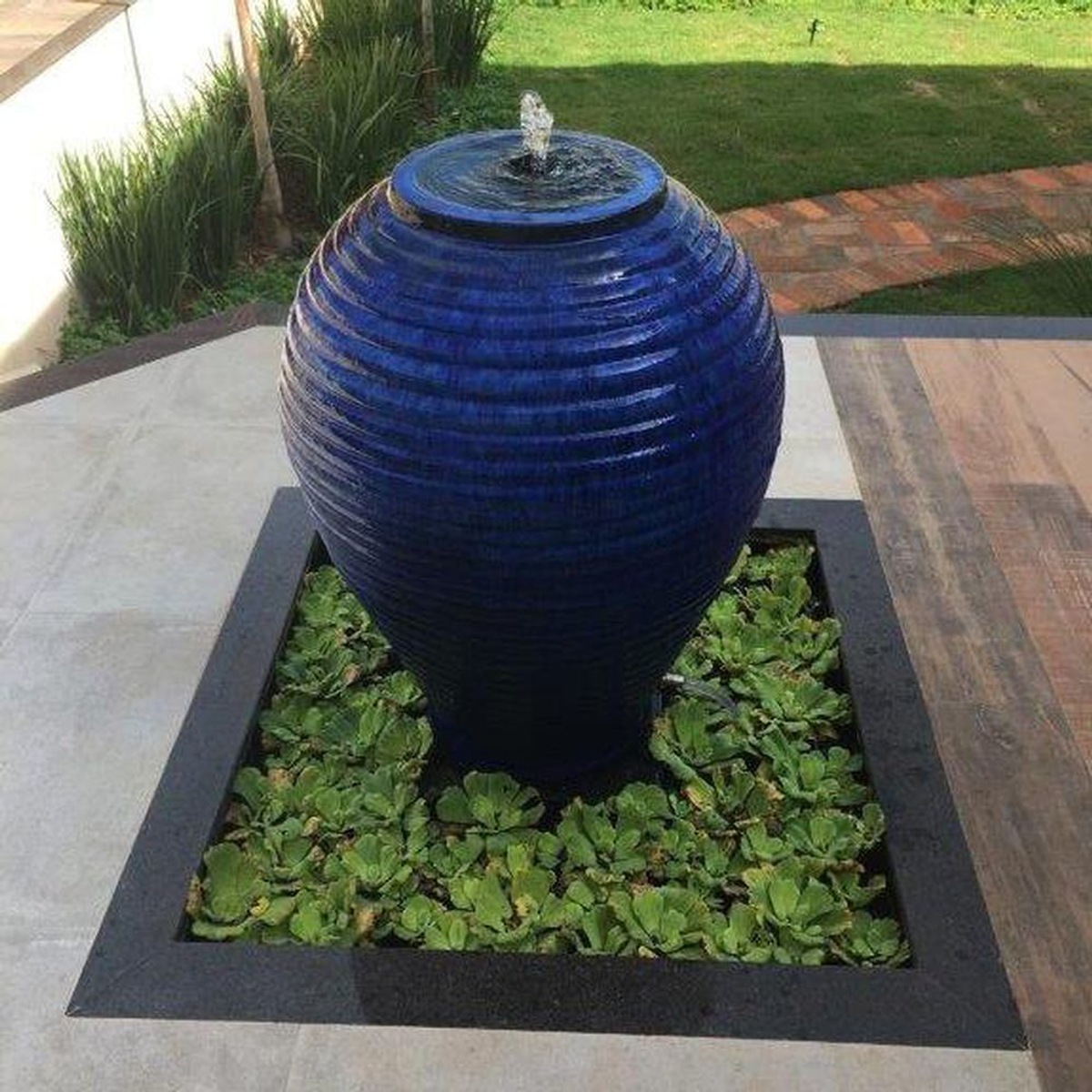Você pode fazer ainda uma combinação de vasos de vários tamanhos junto da sua fonte como eu usei este jardim que projetei, a combinação também irá deixar seu ambiente em uma proposta em moderna e sofisticada.
